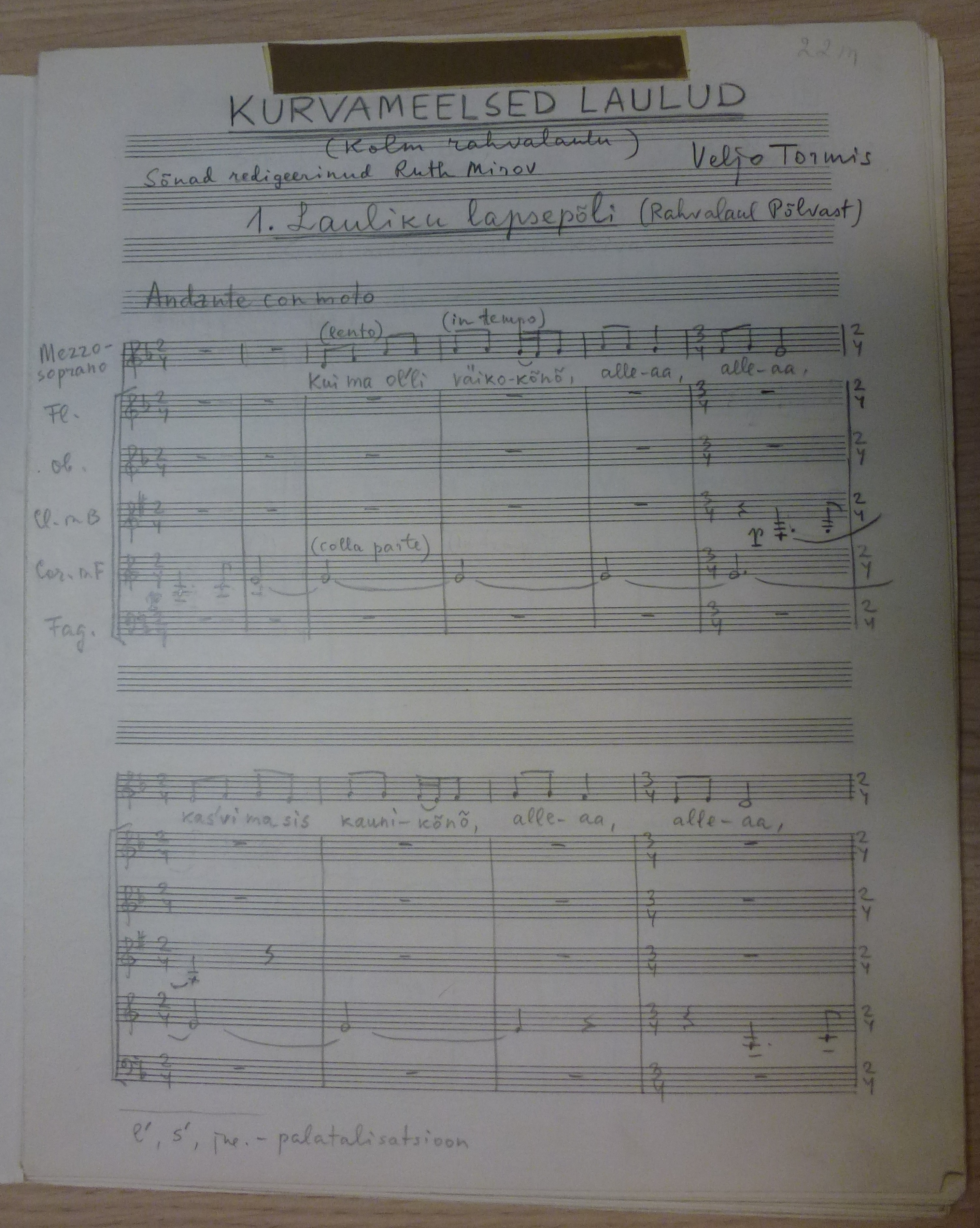 Veljo Tormis' manuscript collection at the Estonian Theat...