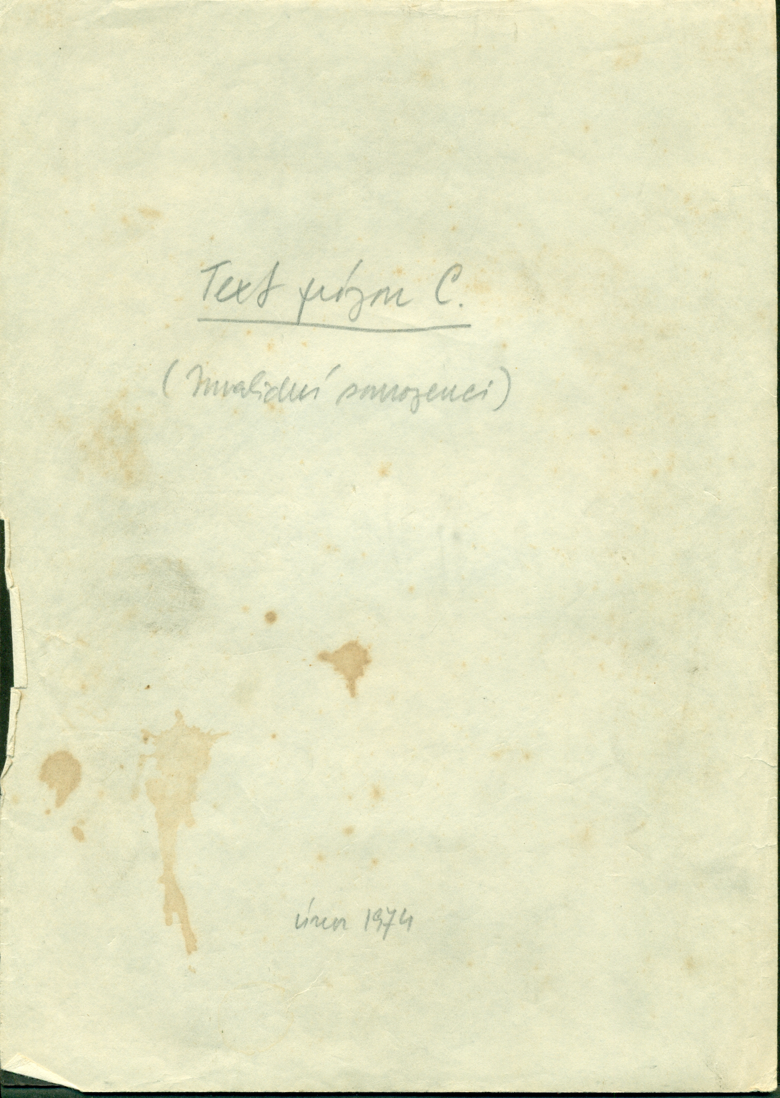 Blatný, Ivan. Old Addresses, in Czech, 1979. Typescript