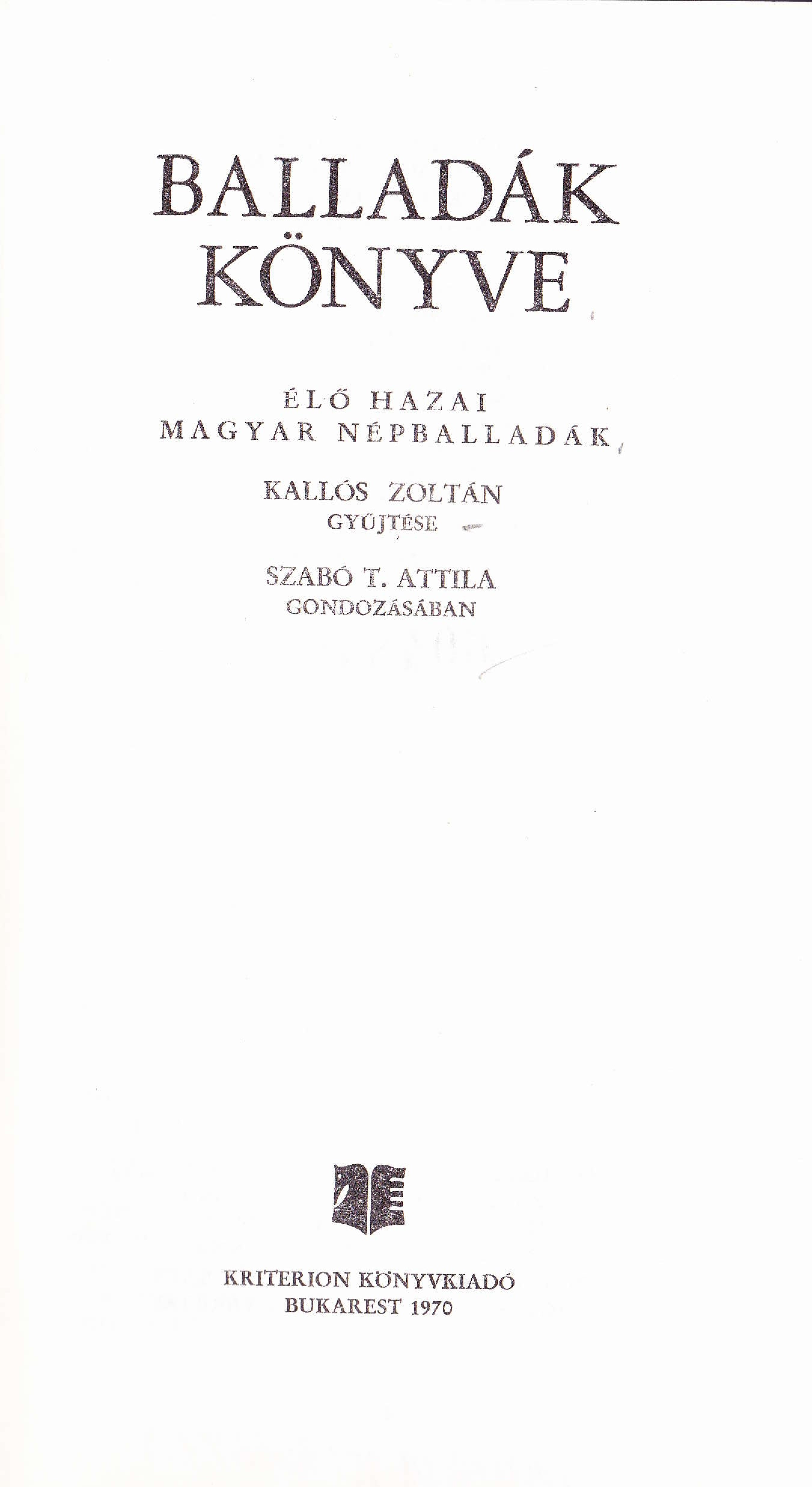 Kallós, Zoltán and Attila Szabó T. Book of Ballads: Livin...