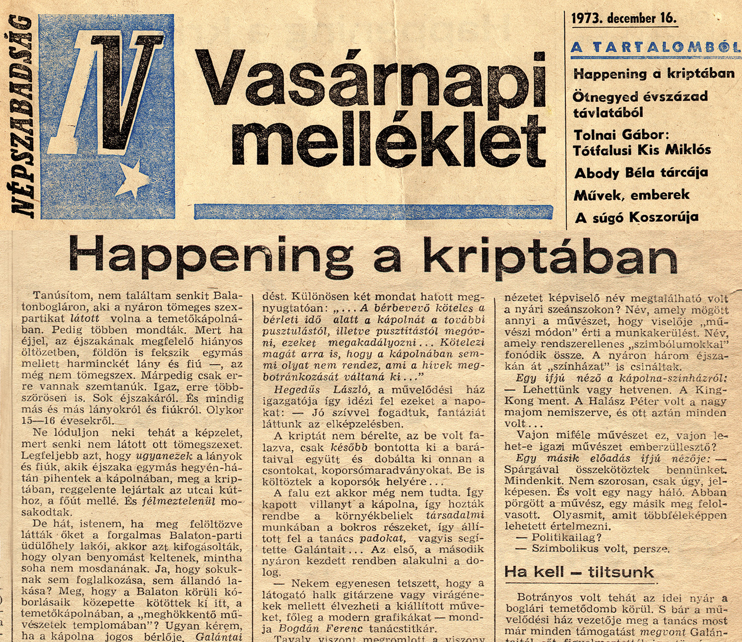 Szabó László „Happening a kriptában” című cikke a Népszab...