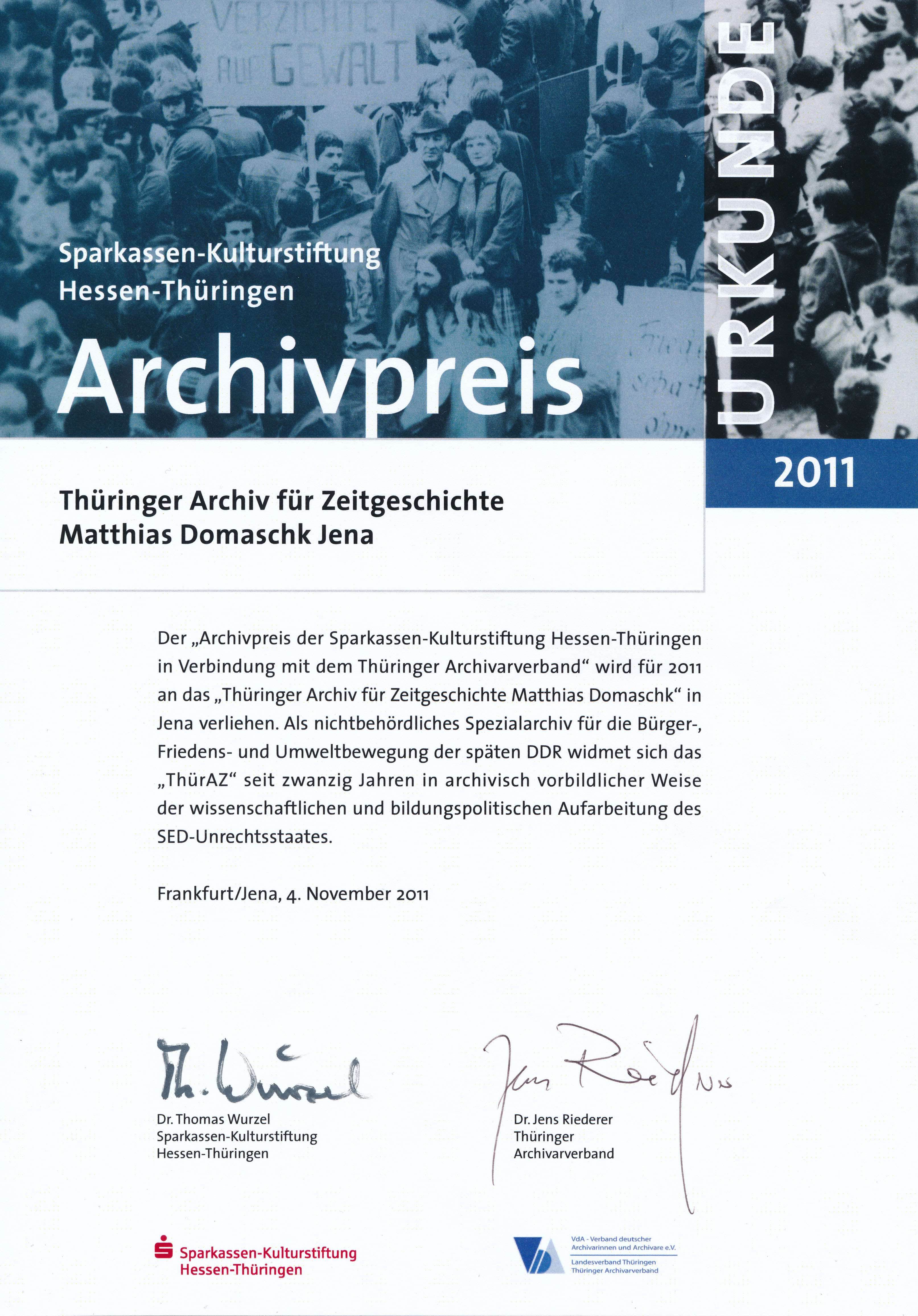 Thüringer Archivpreis, 2011